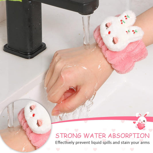 SKINCARE BASICS 4 Pairs Spa Wrist Bands for Washing Face | Microfiber Wrist Towel Band Scrunchies Absorbent
