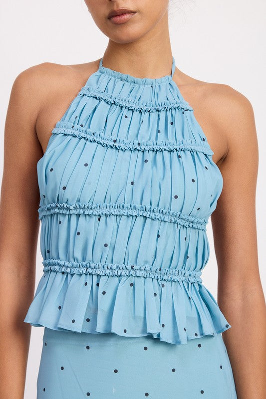RUFFLED TIE BACK TOP WITH OPEN BACK
